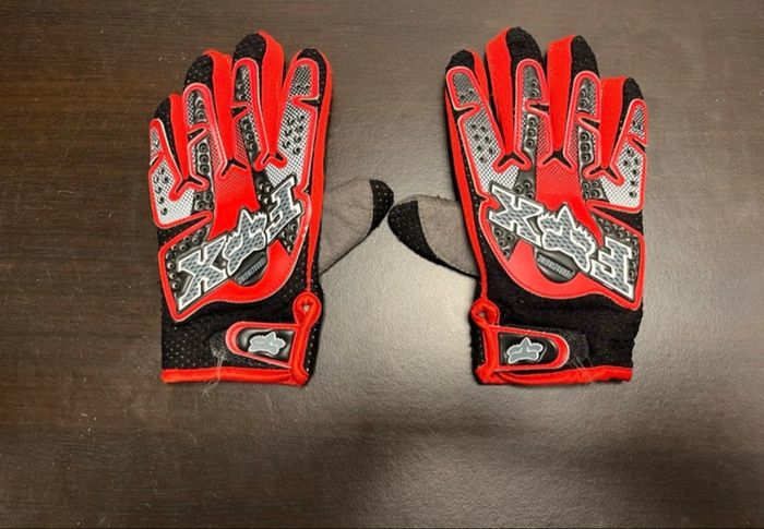 Gants pour moto/quad/vélo pour enfant de la marque Fox en taille S, signes d’usure visibles mais pas de défauts entravant la sécurité des gants