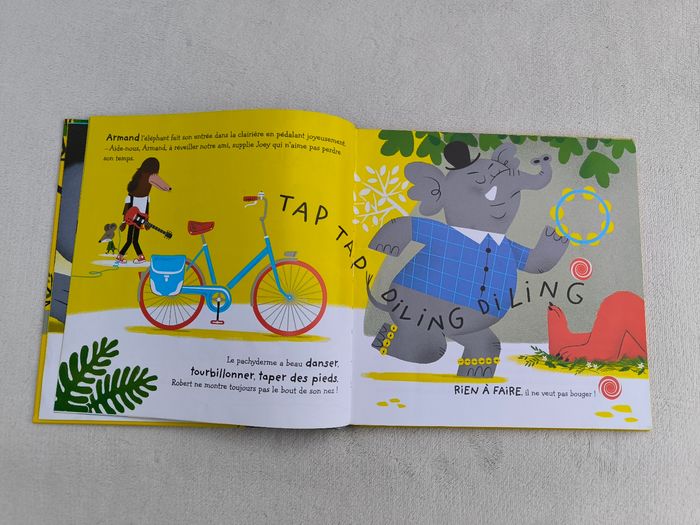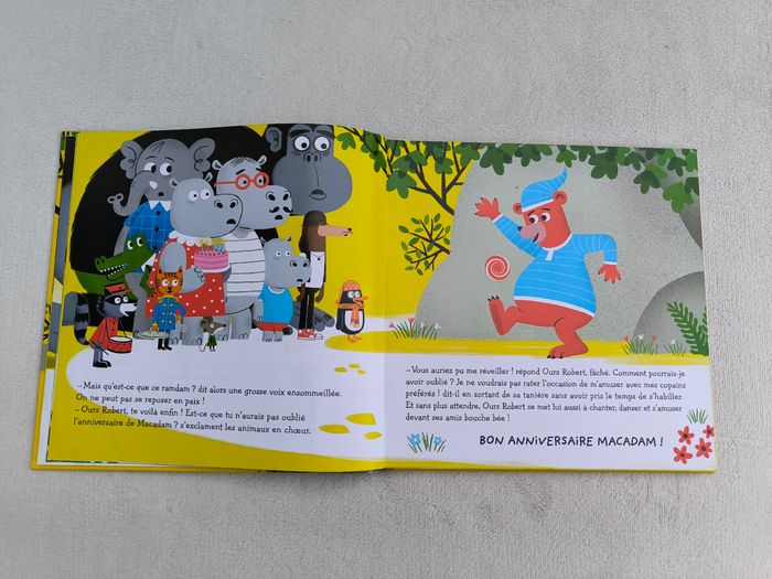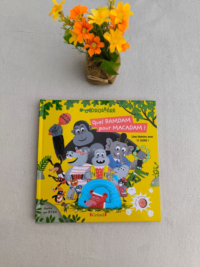 Livre sonore Drolalire : Quel ramdam pour macadam Éditions Gründ • Une histoire avec 11 sons -> Ours, crocodile, raton-laveur, gorille, chat, pingouin, souris, lévrier, éléphant, -> Ronflements, klaxonne, tambour, tapage, bruit de casseroles, éternuements, chatouilles, guitare électrique, tambourin, fanfare • Intérieur du livre en très bon état • Une page légèrement détachée • Intérieur pile oxydé Fonctionne Piles non incluses En très bon état #evelyne_livres