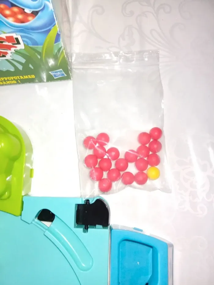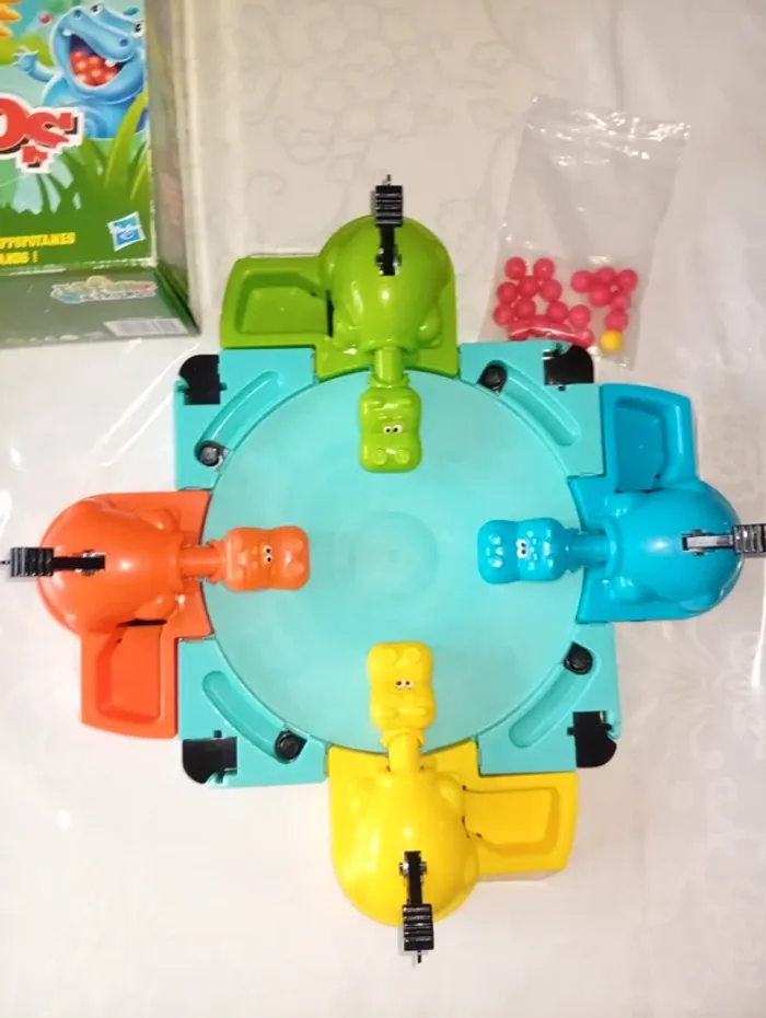 Hasbro - Hippo's Gloutons - Jeu de société - 2 à 4 joueurs. 20 billes dont une jaune , il manque le couvercle du dessous mais n'empêche pas le jeux .