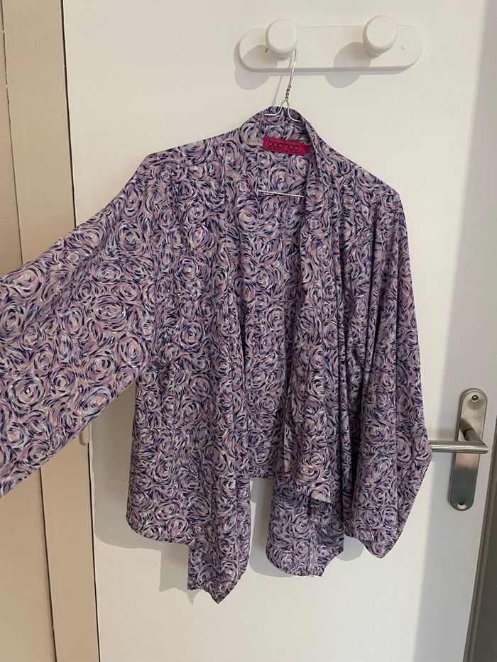 Description : kimono - déshabillée e Taille / pointure : M Couleurs : blanc bleu violet Détails : motifs tourbillon style Van gogh Marque : boohoo Défauts : aucun Peu porté