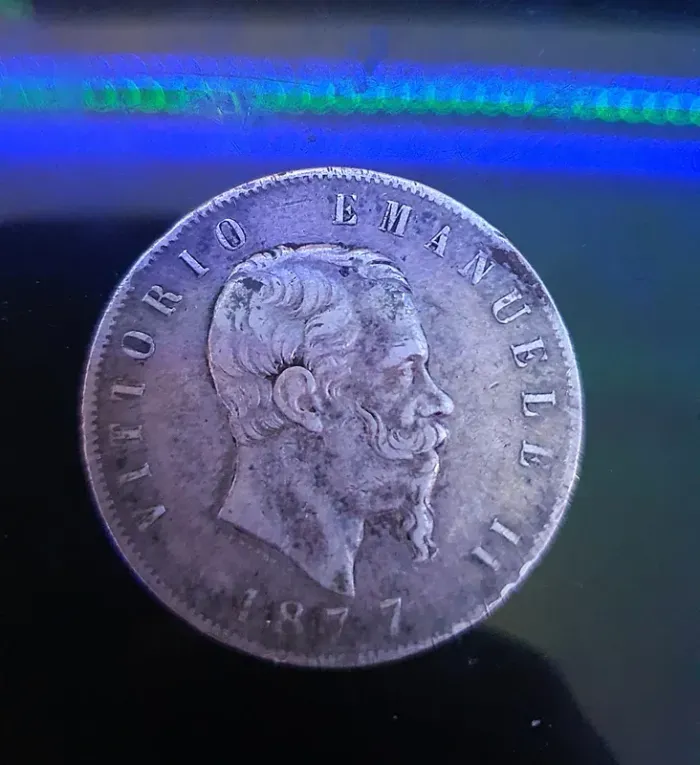 Monnaie du Royaume d'Italie Pour Vittorio Emanuele II 5 Lire 1877 R tres bon etat Métal précieux Argent
