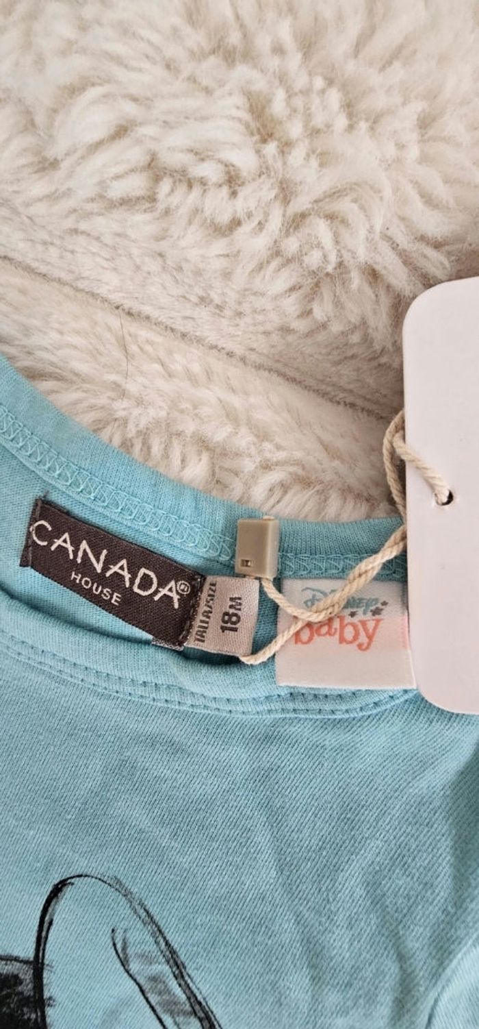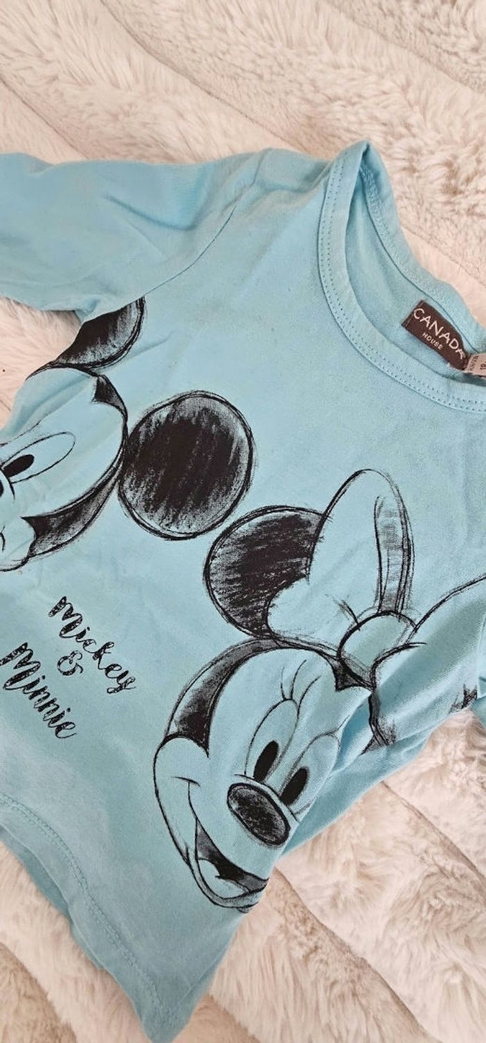 Magnifique tee-shirt manches longues de Mickey & Minnie couleur turquoise. Taille 18 mois . Neuf.