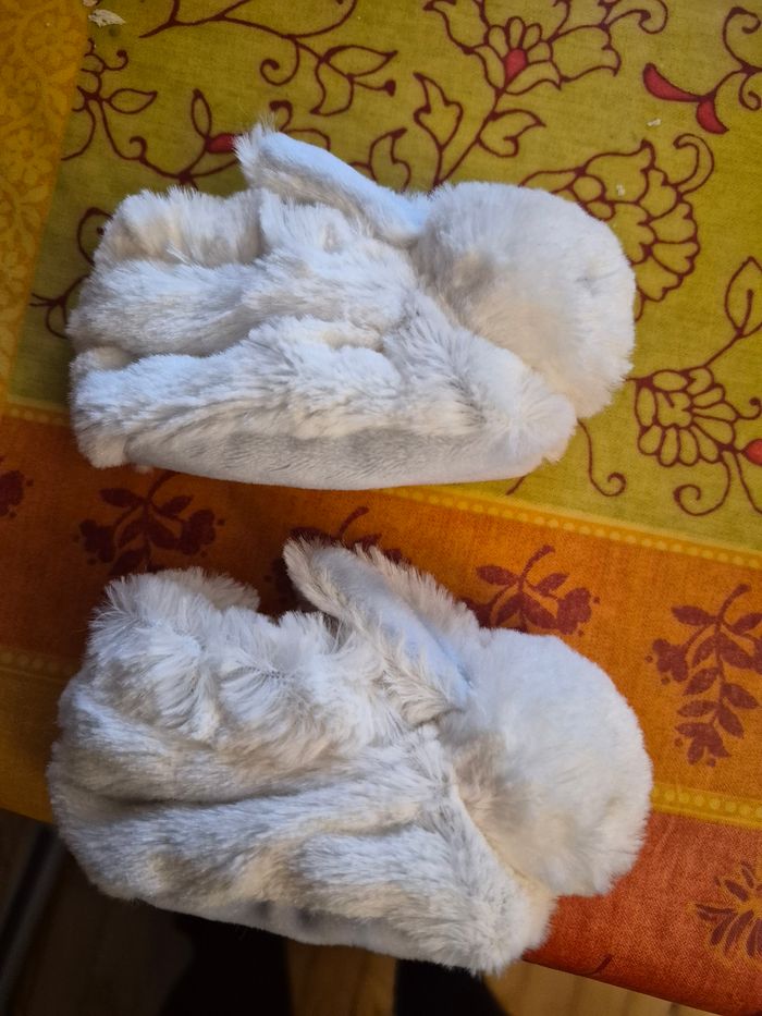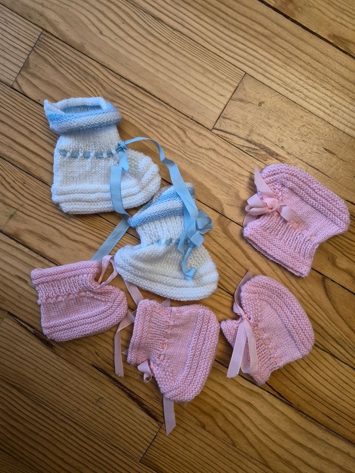 Tres bon etat 2 tee shirts 2 pantalons avec pied 6 gilets dont 1 tres chaud a boutons pression en velour 1 sweat-shirt 1 pyjama chaud 1 combi pilote 1 bonnet en coton 3 paires de chaussons tricot 1 paire de chaussons lapin type peluche