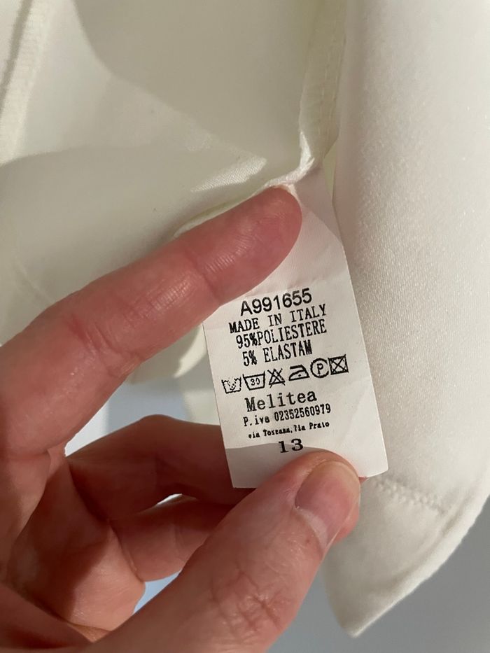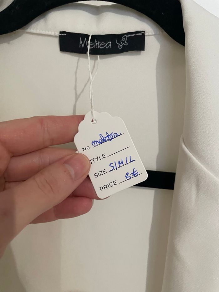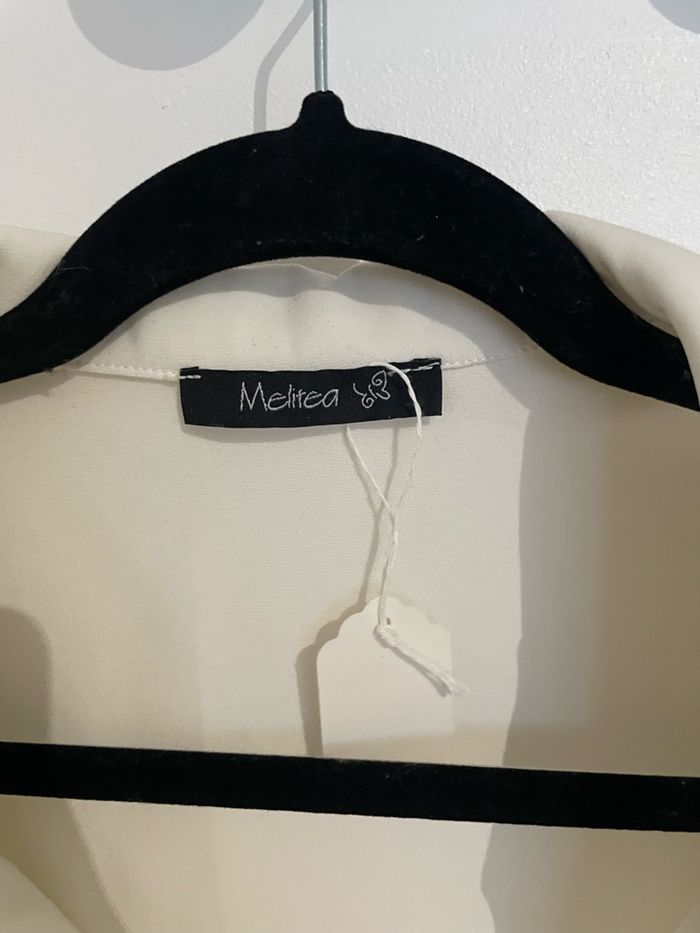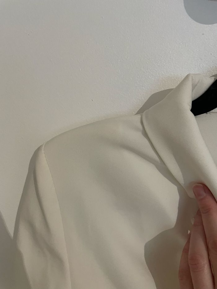 Description : veste de tailleur - blazer court Taille / pointure : M Couleurs : blanc Détails : avec épaulette Marque : Melitea Défauts : neuf