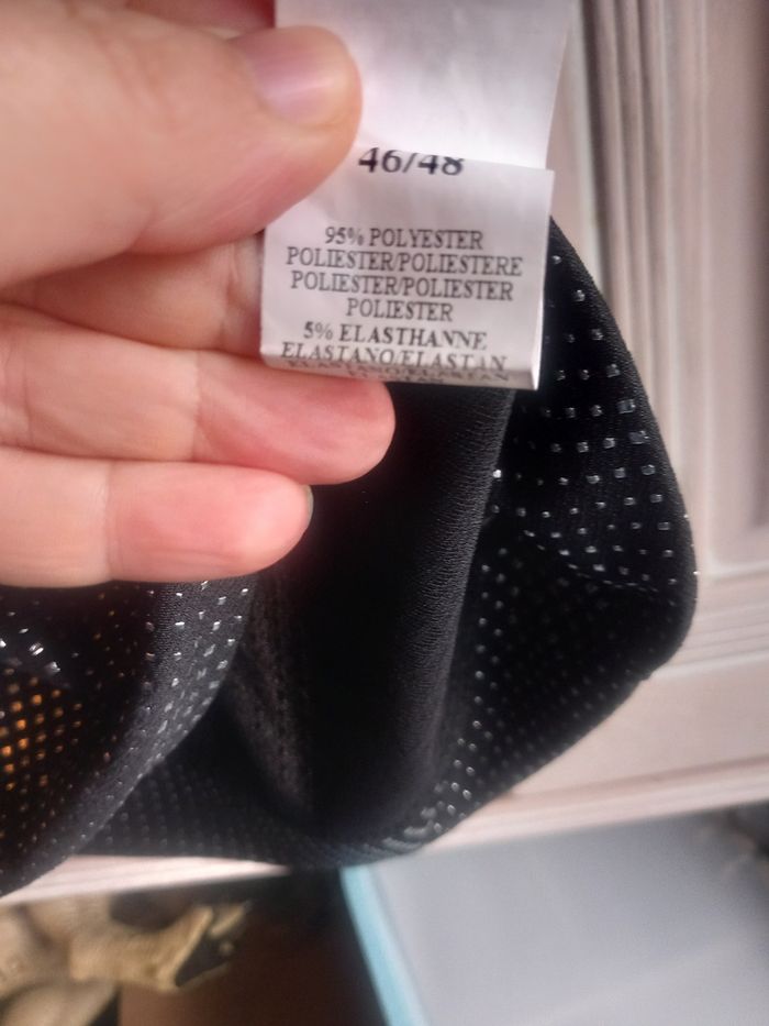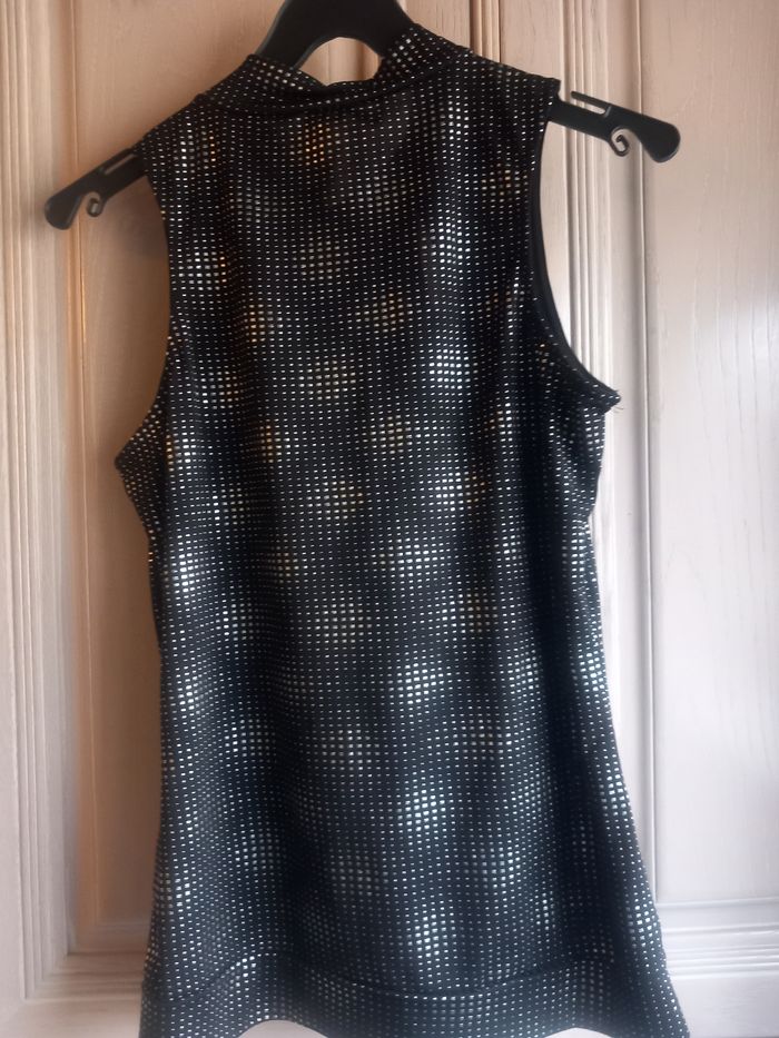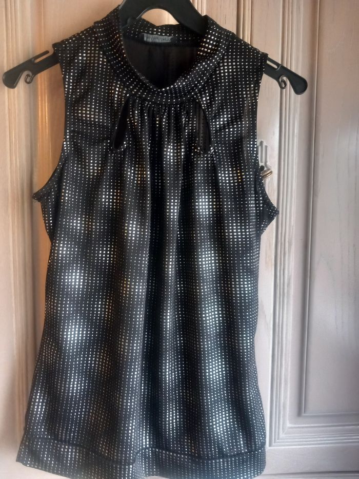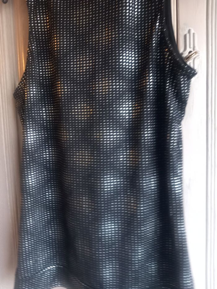 Débardeur femme Marque Jefferson Motifs brillants Couleurs noir et gris Matières 95% polyester et 5% elasthane Taille 46 Dimensions approximative 66cm de long : largeur sous aisselles 50cm : largeur d'épaules 34cm En très bon état