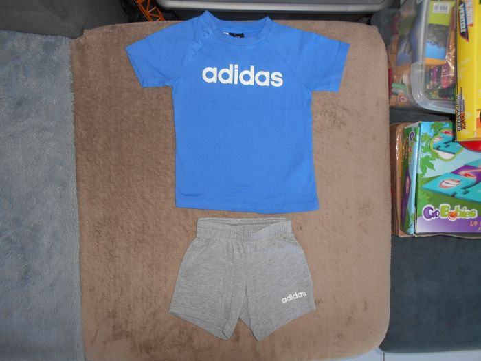 Vends cet ensemble de la marque Adidas, taille: 6/9 mois, en très bon état, sans trou, ni tache, maison non fumeur et sans animaux.