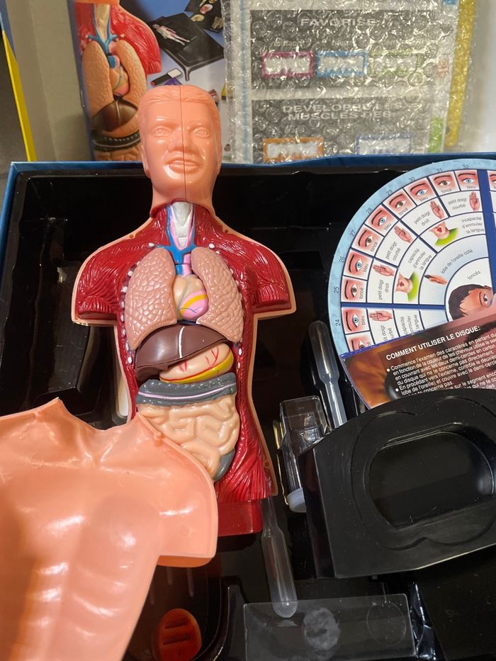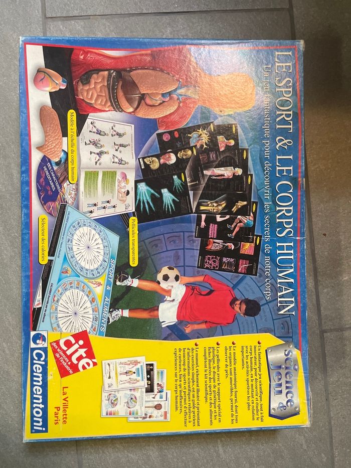 Clementoni cité des sciences et de l’industrie Le sport et le corps humain La boîte est complète ****le carton à souffert …. Durant déménagement En bon état un livret accompagnant donne plein d’informations intéressantes . Découvrir les secrets de notre corps ! 'Le sport et le corps humain l'univers fascinant de l'anatomie et de la physiologie. Avec ses transparents illustrés, ses fiches informatives et ses accessoires ludiques, ce jeu vous permettra d'en apprendre davantage sur le fonctionnement du corps humain et les bienfaits de l'activité physique. Idéal pour les passionnés de sciences et de sports, ce jeu vous fera découvrir de nombreuses informations captivantes sur le corps et ses performances. - Jeu éducatif sur le corps humain et le sport - Comprend des transparents, des fiches et des accessoires - Idéal pour les curieux de sciences et d'activités physiques - Permet d'en apprendre davantage sur l'anatomie et la physiologie - Favorise la découverte du fonctionnement du corps en mouvement