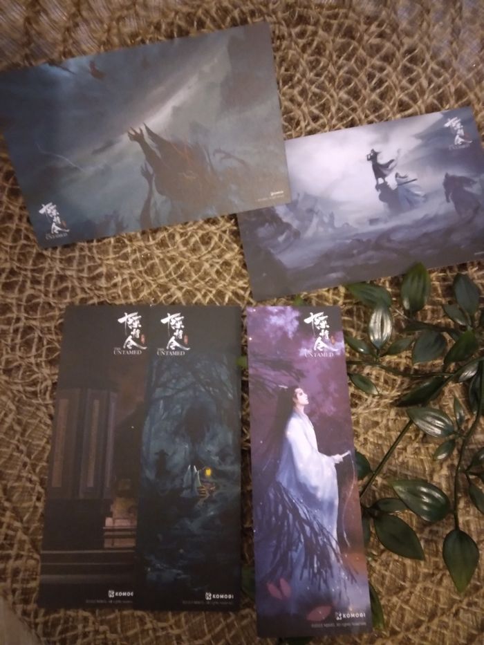 Lot de 5 goodies mo dao zu shi. Neuf Il y en a 2 format carte postale et 3 format format Marque page. Illustrations recto verso Je vends également des stand acrylique mo dao zu shi et heaven official blessing