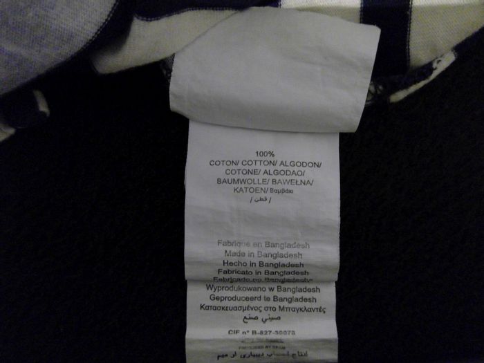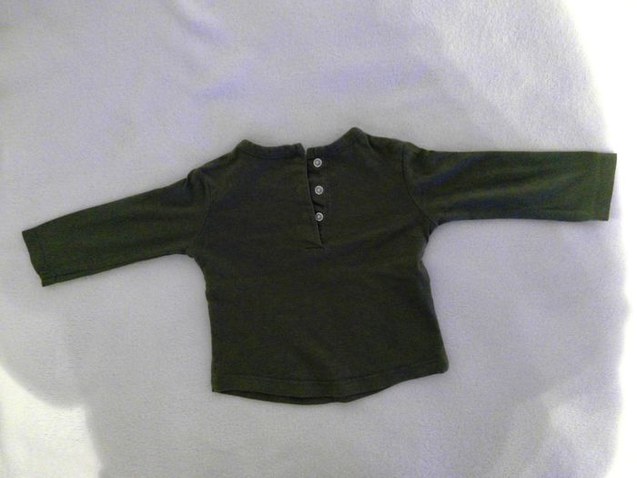 Manches longues - 1 t-shirt rayé bleu et blanc, boutons pression au niveau de l'épaule marque : Du pareil au même - 1 t-shirt vert kaki, boutons pression dans le dos marque : La Redoute