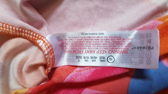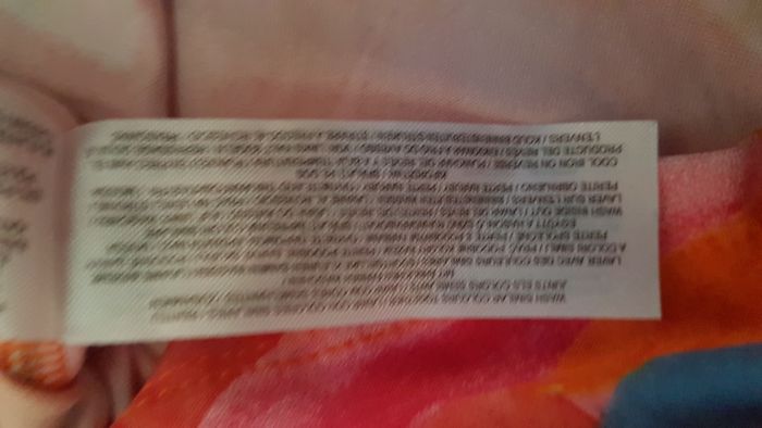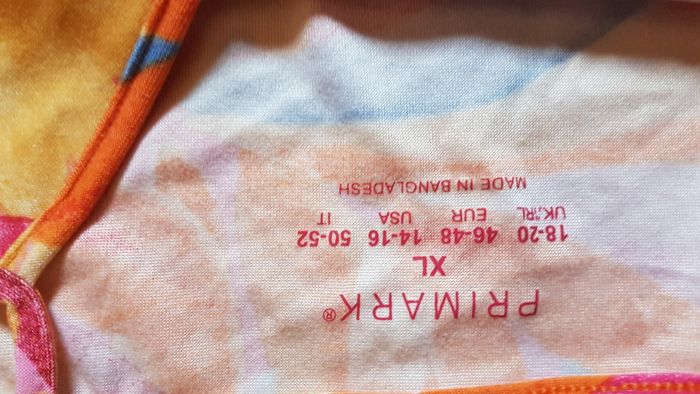 Débardeur à bretelles femme Taille 46-48 Couleur orange à motifs bordeau, bleu, jaune et rose Fines bretelles réglables Encolure en V sur la poitrine Léger Marque Primark