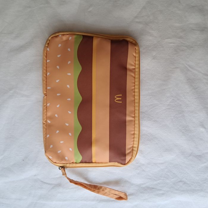 Pochette McDonald's motif hamburger Avec lanière dragonne Dimensions : 15 x 20,5 x 1 cm Poids : 43 grammes Neuve, jamais utilisée