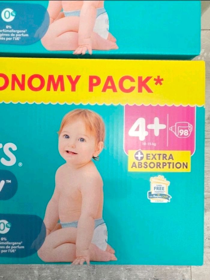 🍼 Pampers Baby-Dry T4+ Lot de 2 × 98 couches (10–15 kg) - photo numéro 1