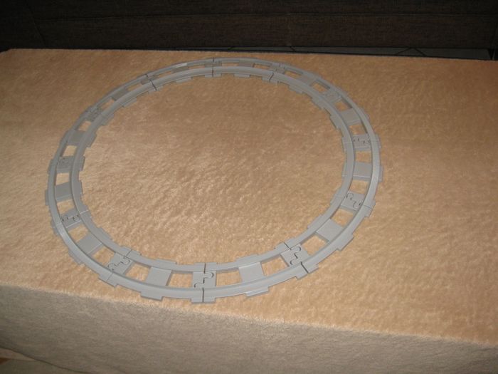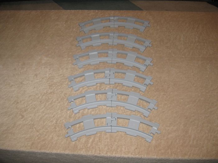 lot de 12 rails couleur gris clair courbé permettant de constituer un cercle complet ou tout autre circuit. Pour train électrique légo duplo