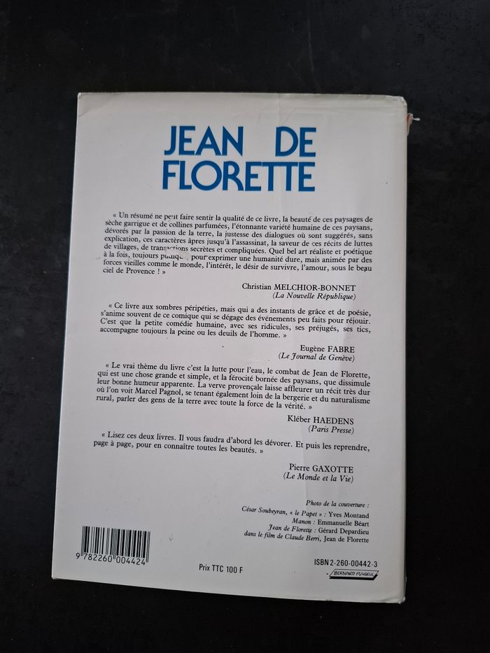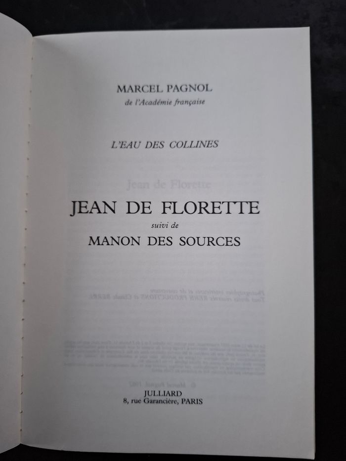 Roman de Marcel Pagnol Jean De Florette/Manon des Sources en bon état Vieille édition collector Julliard de 1962 Petit et laid, Ugolin, le dernier des Soubeyran, revient du service militaire. Il retrouve son oncle, le Papet, à qui il dévoile son projet : rester au pays pour cultiver des œillets. Convaincu que l'affaire peut être rentable, le Papet accepte de financer l'entreprise..Ju Deux histoires magnifiques sous le beau ciel de Provence