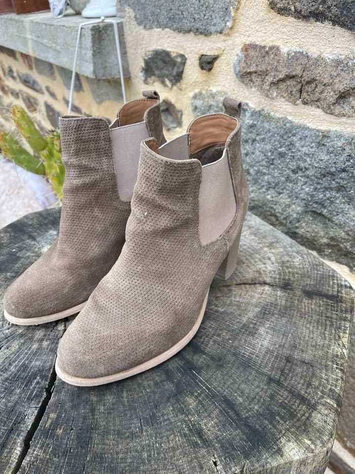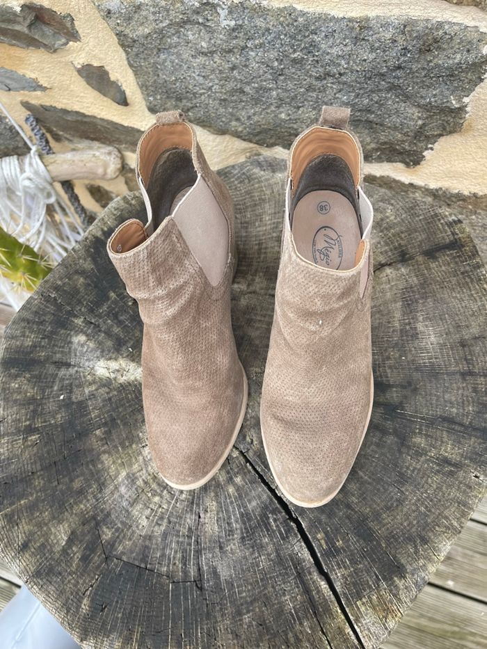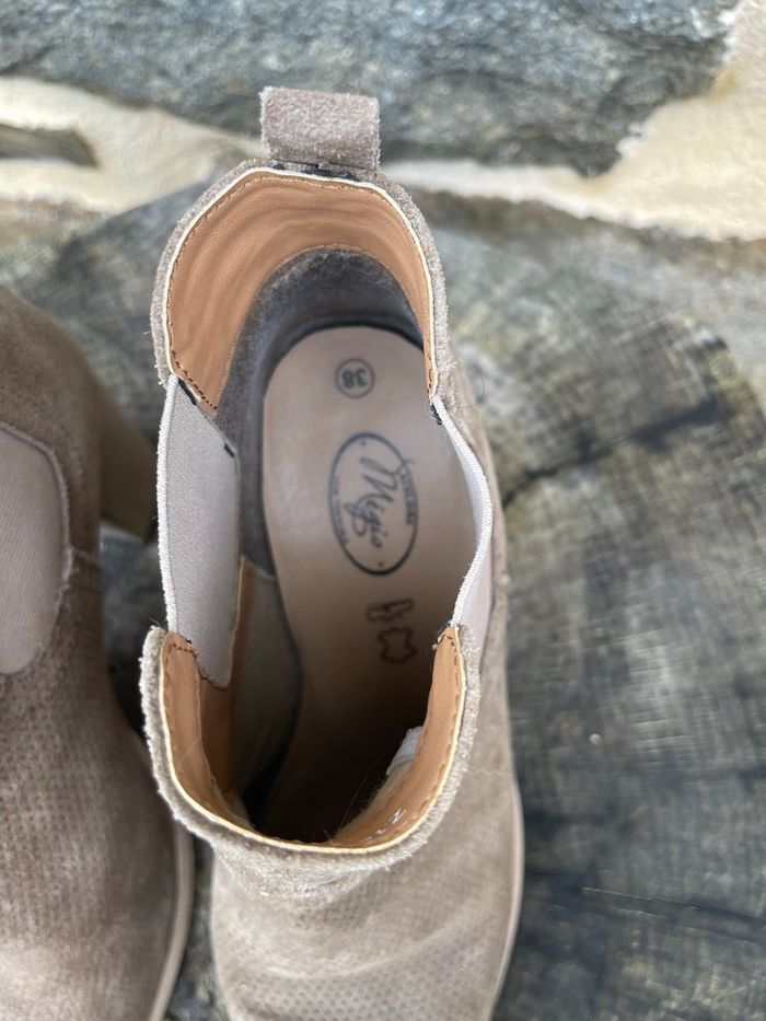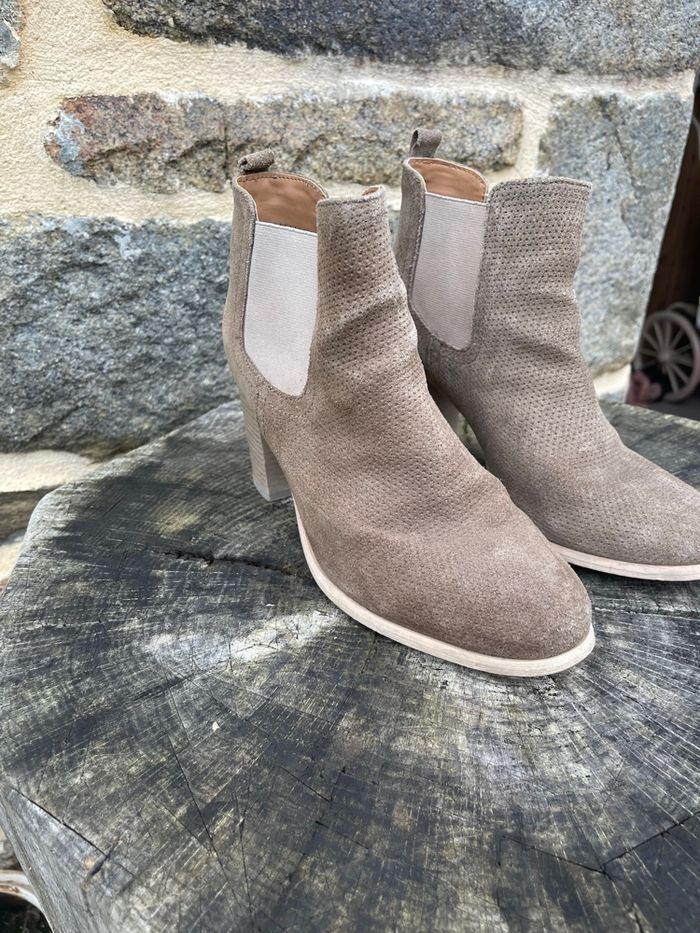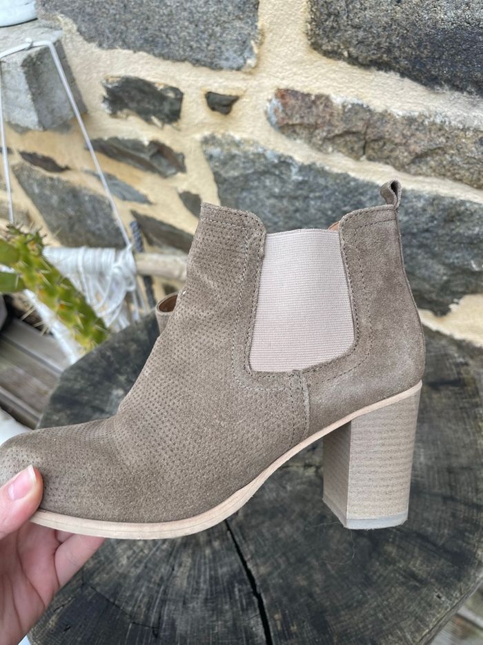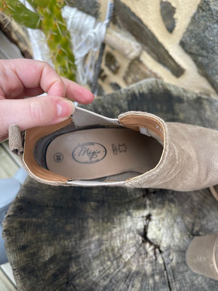 Bottine en daim à talon avec élastique au niveau de la cheville beige / kaki Acheter en Espagne plus de 120€ Taille 38 Très bonne état 100% cuir Atelier Mégis