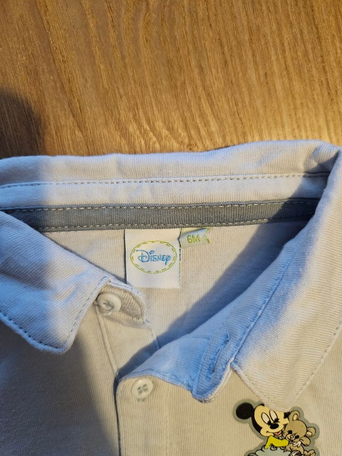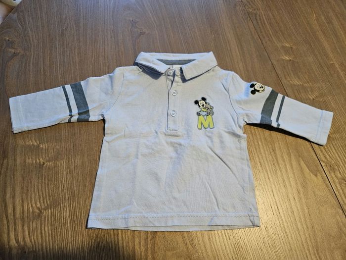 Polo bleu clair à manches longues Mickey Taille 6mois Très bon état
