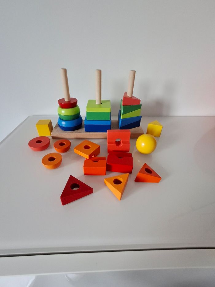 Jeu de construction. Formes à empiler. En bois. Tres bon état. A partir de 2 ans.