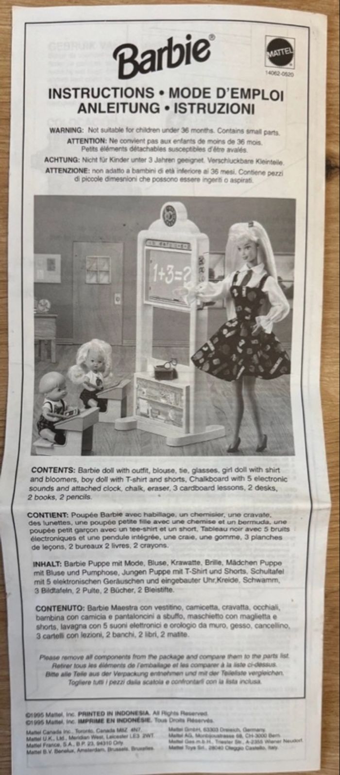 Barbie maîtresse d’école, Matel, 14062 année 1995 avec boîte
