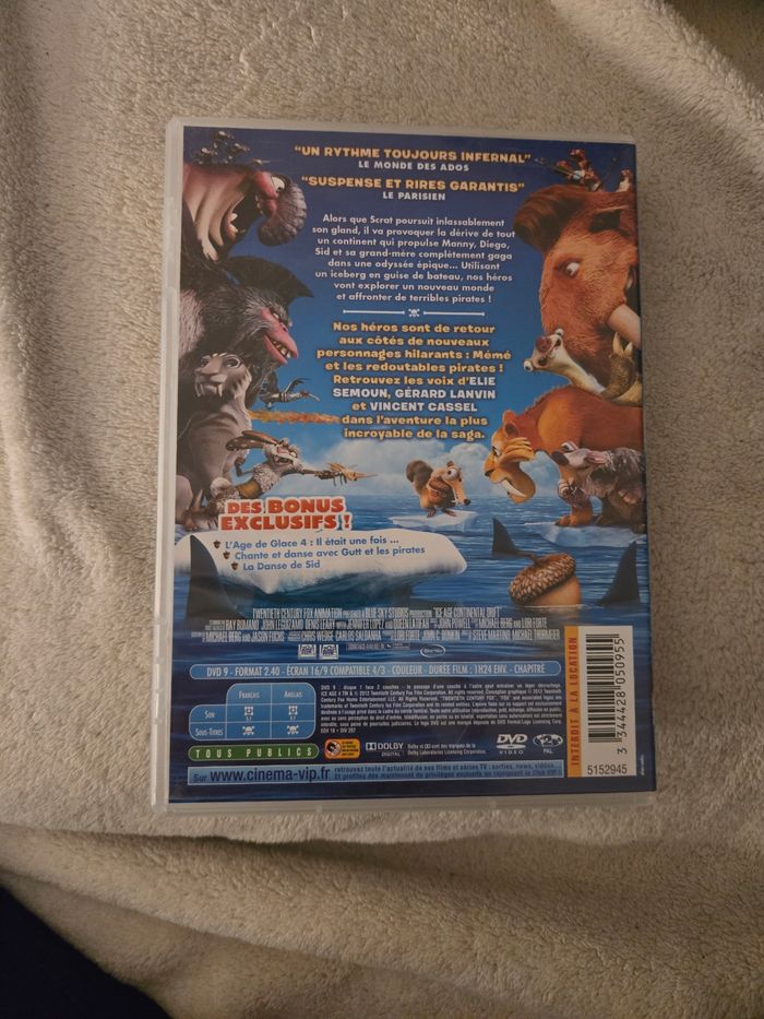 Je vends le DVD du film d'animation "L'Âge de Glace 4 : La Dérive des Continents". - Type de produit : DVD - Titre : L'Âge de Glace 4 : La Dérive des Continents - Type de contenu : Film d'animation Très bon état. N'hésitez pas à me contacter pour plus d'informations.