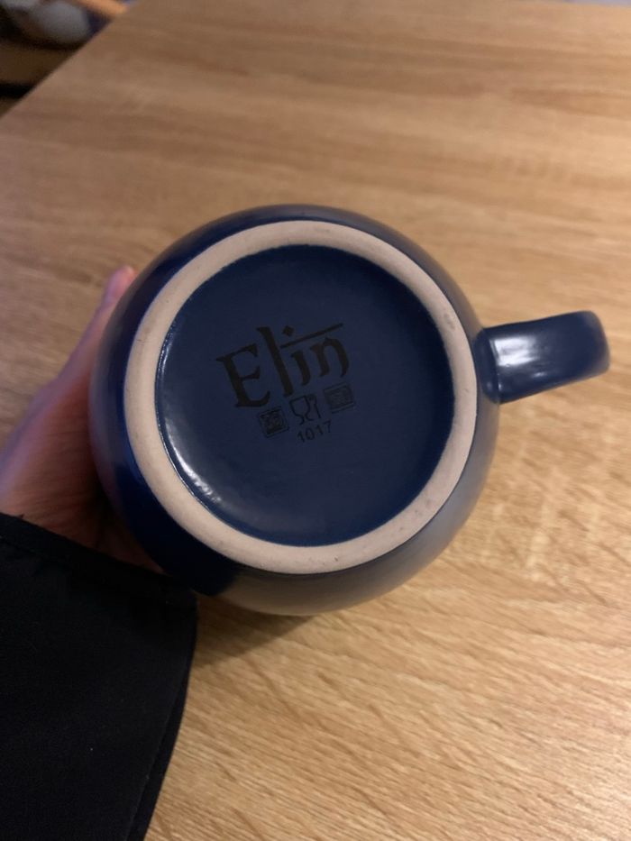 Jolie tasse de bonne contenance. Bleu marine avec bordure marron. En parfait état.