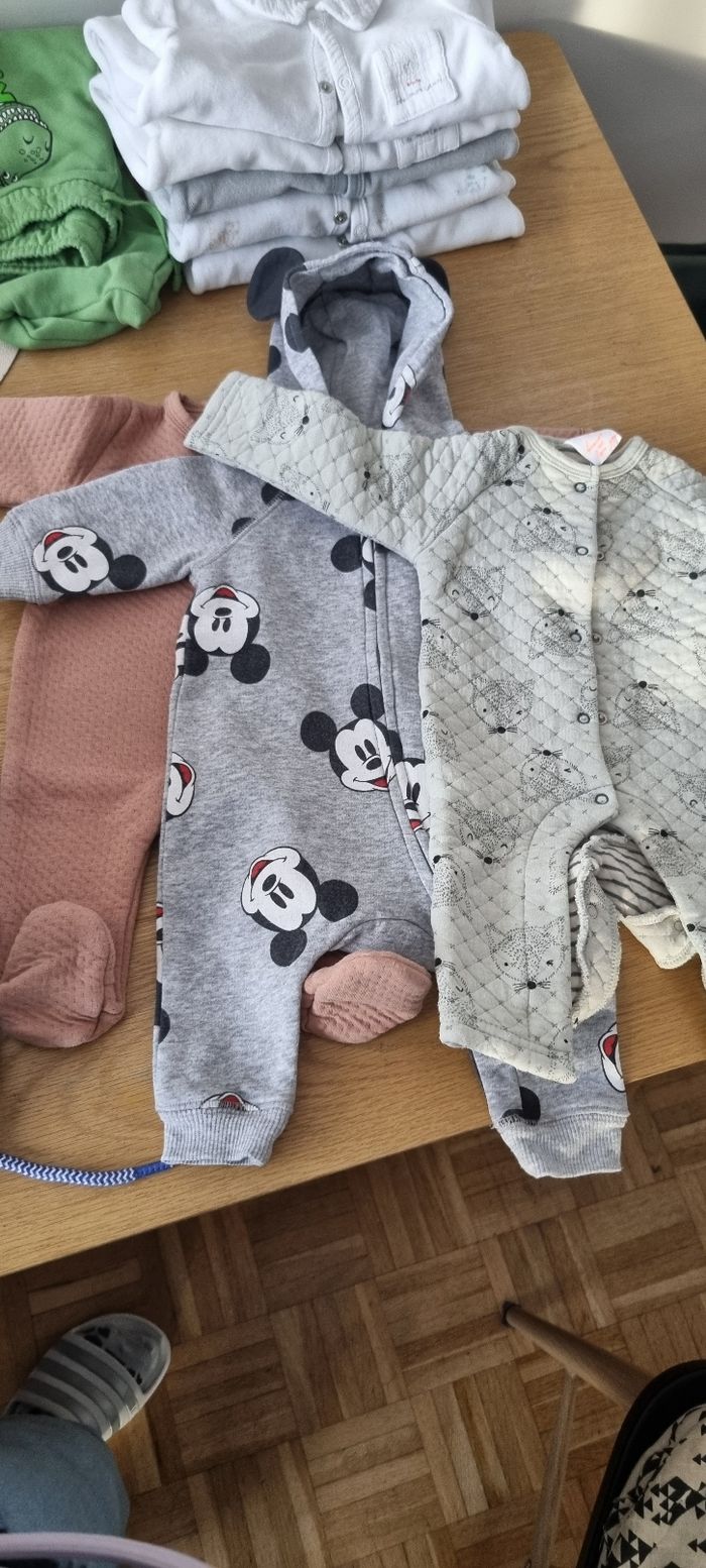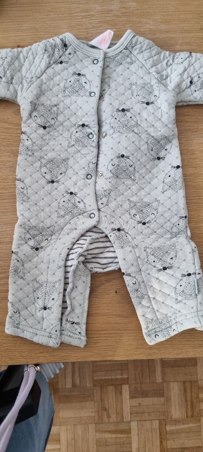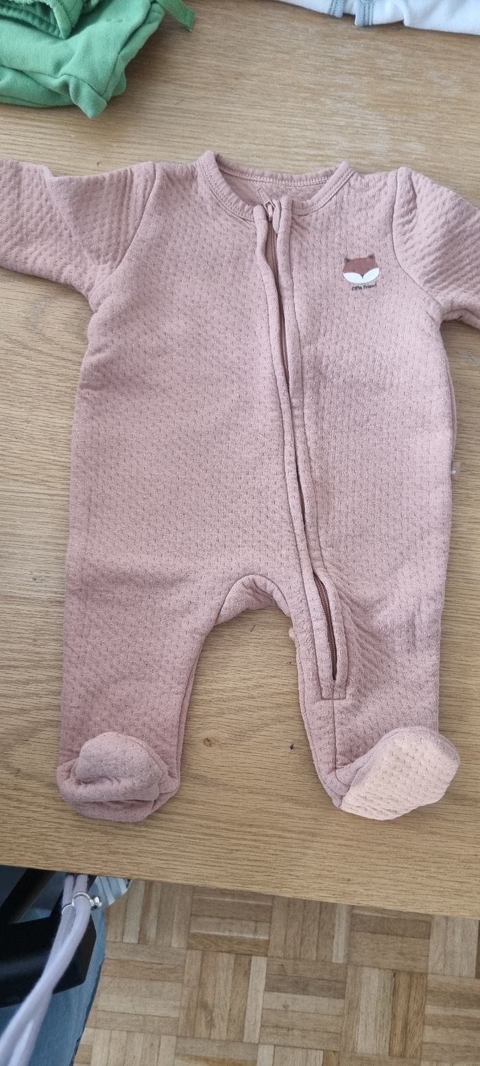 Trois combinaisons en très bon état de différentes marques, taille 1 mois 56 cm.