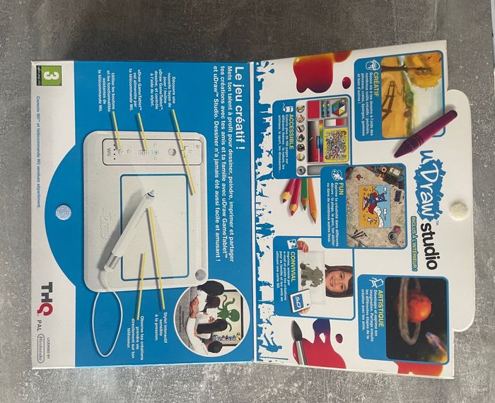 Udraw game tablet, tablette de jeu + jeu Udraw studio pour Nintendo Wii en boite. Bon état. Livré avec boite, pas de notice. Contenu : 1 tablette avec stylet, 1 jeu udraw complet. Wiimote non incluse ( voir photos ). Envoi rapide et soigné. Consultez mes autres articles pour de moindres frais de port.