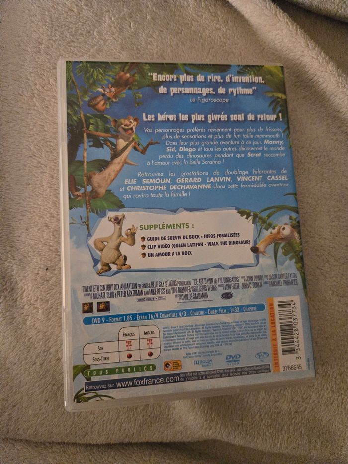 Je vends le DVD du film d'animation "L'Âge de Glace 3 : Le Temps des Dinosaures". - Type de produit : DVD - Titre : L'Âge de Glace 3 : Le Temps des Dinosaures - Type de contenu : Film d'animation Très bon état. N'hésitez pas à me contacter pour plus d'informations.