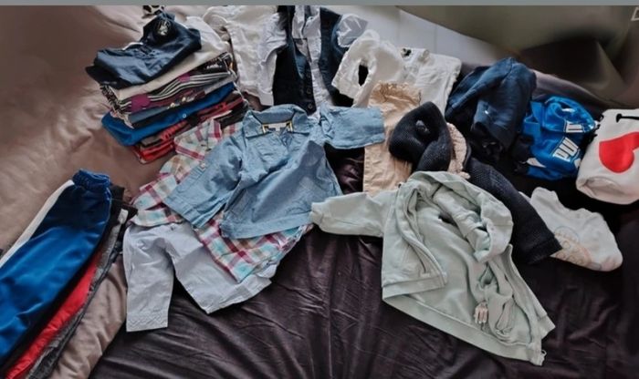 Gros lot de vêtements en 12 mois pour garçon . Très peu portés et même jamais pour certains . 2 Vestes 1 pull 5 Chemises + 1 gilet 3 Ensemble veste et jogging (1 puma) 1 Ensemble chemise pantalon 13 tee shirt manches longues polo (1 stade toulousain) 6 Pantalons (1 puma 1 adidas) + 1 ensemble simba pull et pantalon