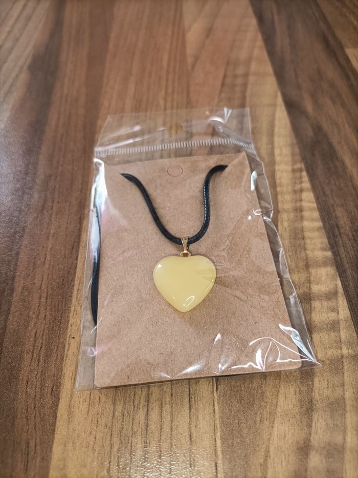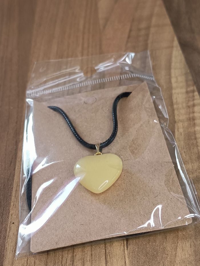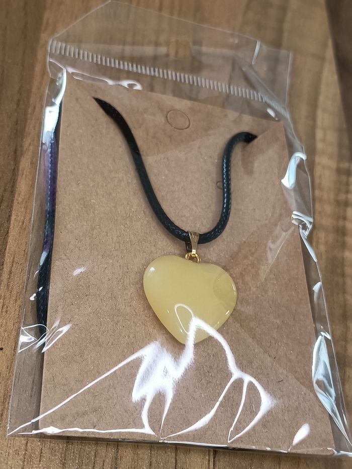 Collier neuf coeur en pierre couleur miel et cordon cuir