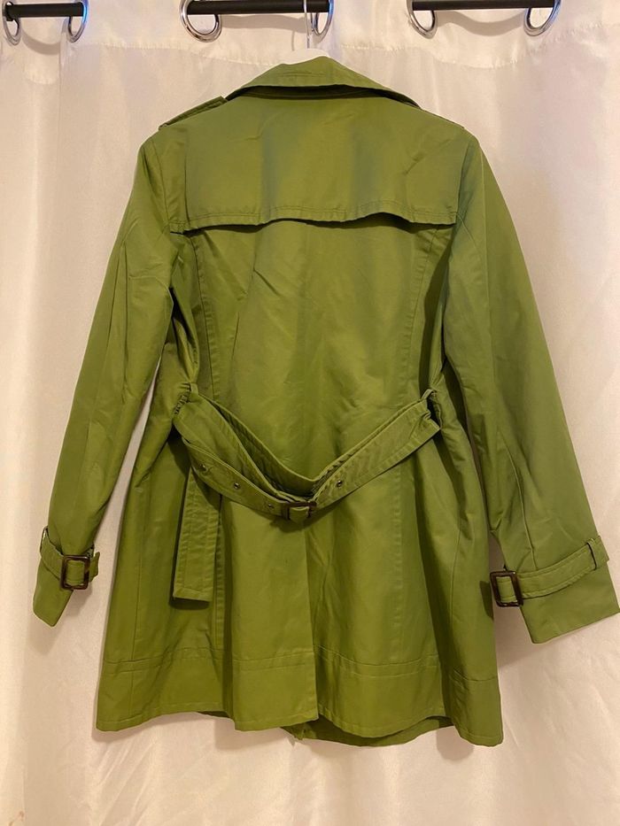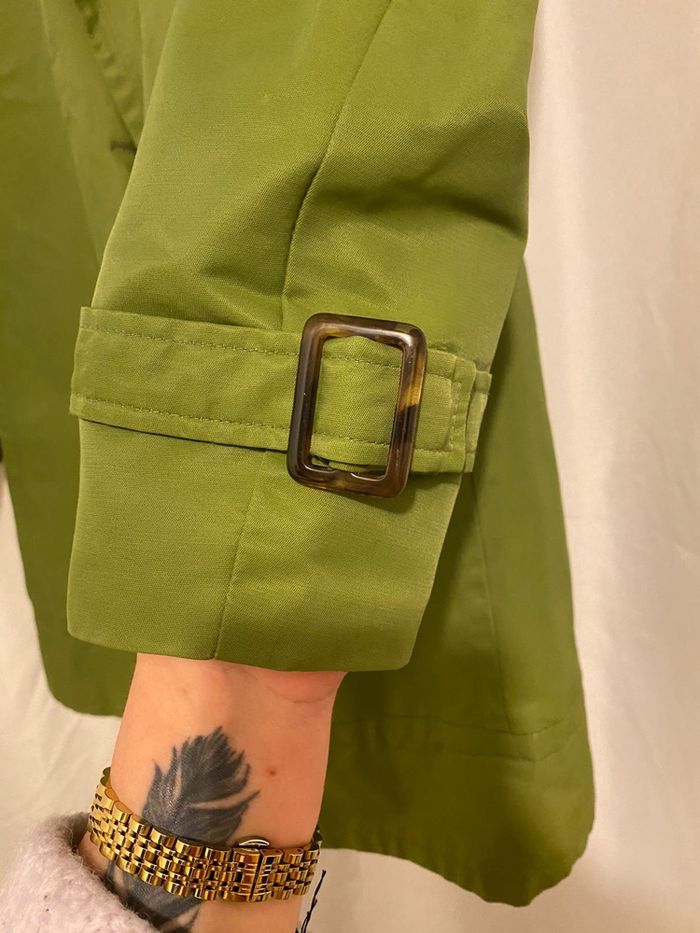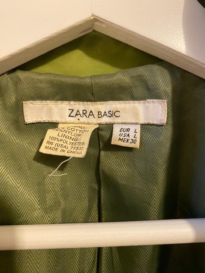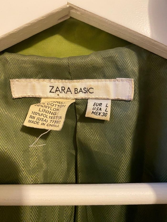 Blouson mi long pour femme État : bon état ( petite tache voir photo ) Marque : Zara Taille : L Couleur : Kaki Matière : polyester Envoie rapide et emballage soigné 📦