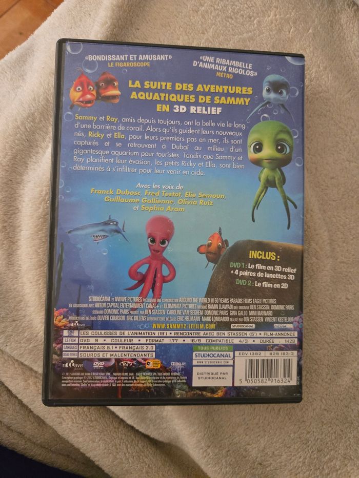 Je vends le DVD du film d'animation "Sammy 2" en très bon état. Ce DVD possède le DVD normalement et celui en 3 D. Il ne reste qu'une paire de lunettes sur les 4 prévu. - Type de produit : DVD - Titre : Sammy 2 - Type de contenu : Film d'animation - Édition : Version 3D incluse - Langues audio : Français - Sous-titres : Français Très bon état, le DVD n'a aucune rayure ni défaut. N'hésitez pas à me contacter pour plus d'informations !