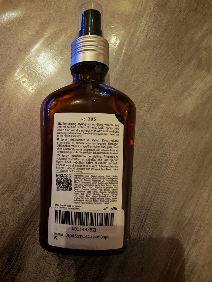 Depot N.305 - Volumizer Spray texturisant 200 ml Neuf et jamais utilisé Spray texturisant Depot N.305 Volumizer, idéal pour apporter volume, texture et tenue légère aux cheveux. Convient parfaitement au coiffage quotidien, pour un rendu naturel et structuré.