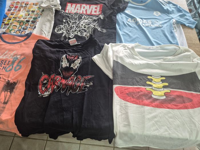 Lot vêtements garçon taille 12 ans. 50 € le lot. * 7 tee shirt manches longues * 7 tee shirt * 1 chemise * 3 polos * 2 pulls * 3 vestes * 1 veste polaire kaporal * 2 jogging (donner) * 1 jean * 1 short de pyjama + 1 short de sport PLUS DE PHOTOS SUR DEMANDE