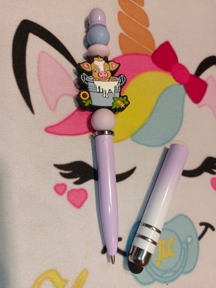 Stylet Vache tactile pour téléphone, tablette, ordinateur etc doublé d'un stylo encre noir 100% personnalisable en silicone alimentaire et/ou bois naturel. Énormément de choix pour les composants, envoyez-moi un message sur un de mes réseaux sociaux présents en bas de page afin de créer main dans la main votre accessoire idéal. Une photo du prototype de celui-ci vous est envoyé pour validation avant envoi.