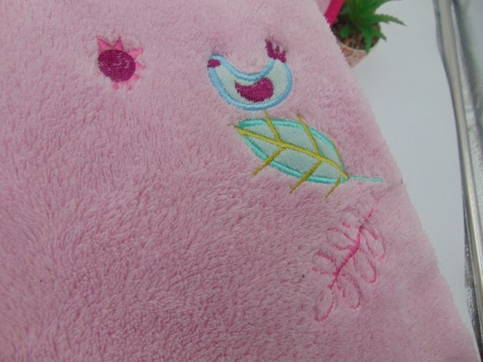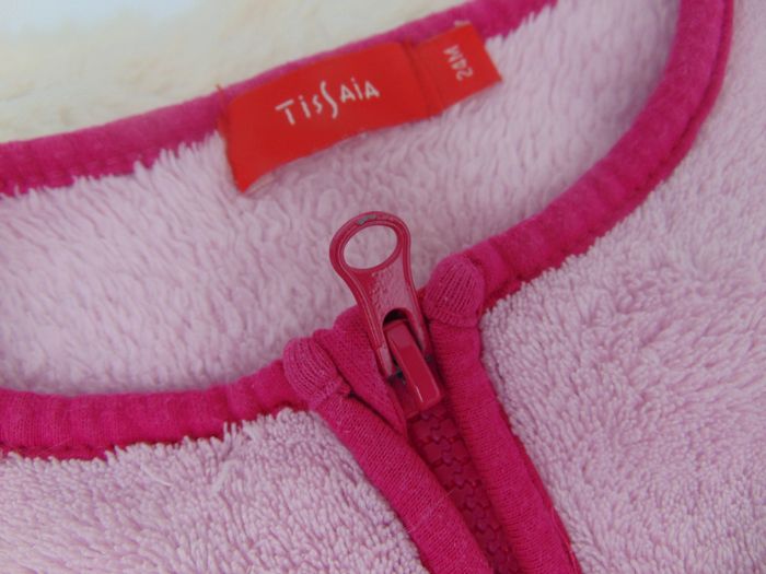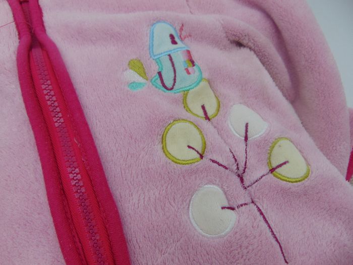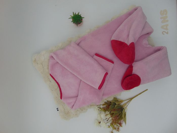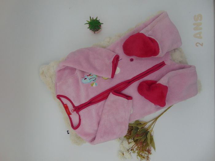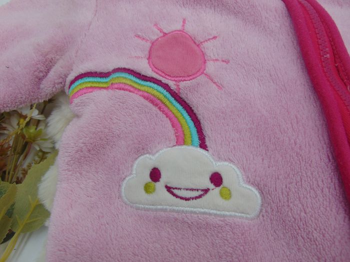 - Matière polaire - Zippé - Très chaud - Couleur rose clair - Bordures rose foncé - Dessin arc en ciel et floral - Aucune tâche ni trou