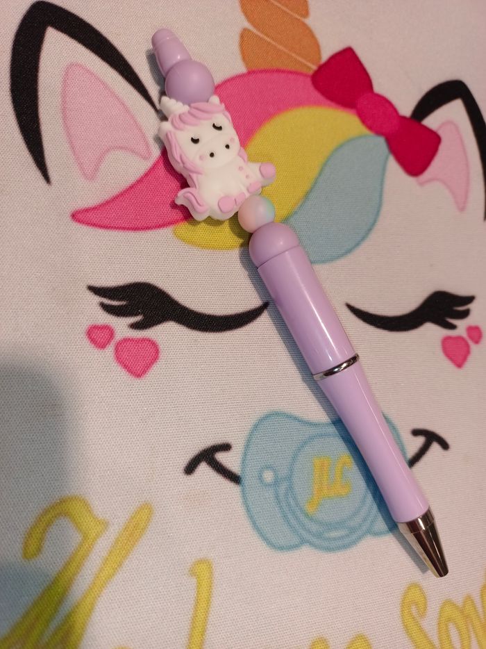 Stylo Licorne 100% personnalisable en silicone alimentaire et/ou bois naturel. Encre noir avec recharge bleu. Plus de recharges disponibles dans les Accessoires. Énormément de choix pour les composants, envoyez-moi un message afin de créer main dans la main votre accessoire idéal. Une photo du prototype de celui-ci vous est envoyé pour validation avant envoi.