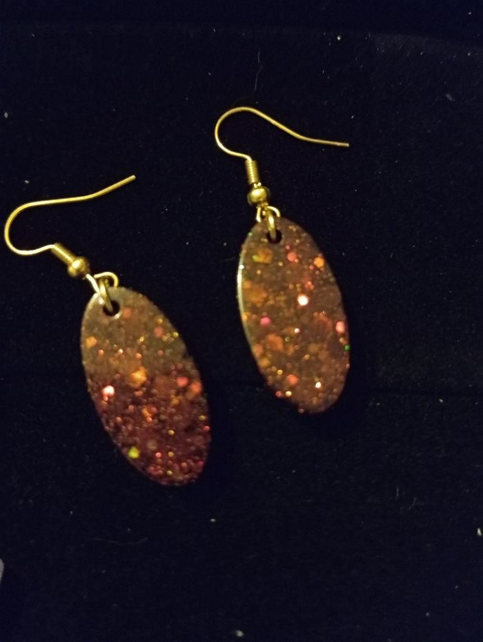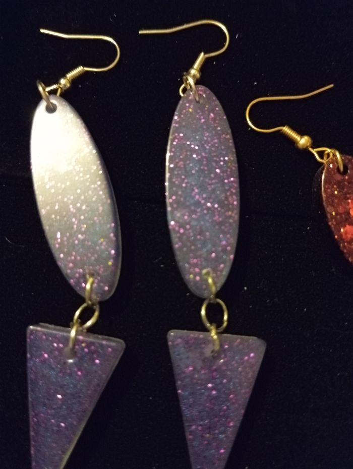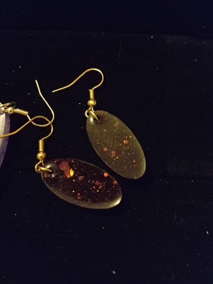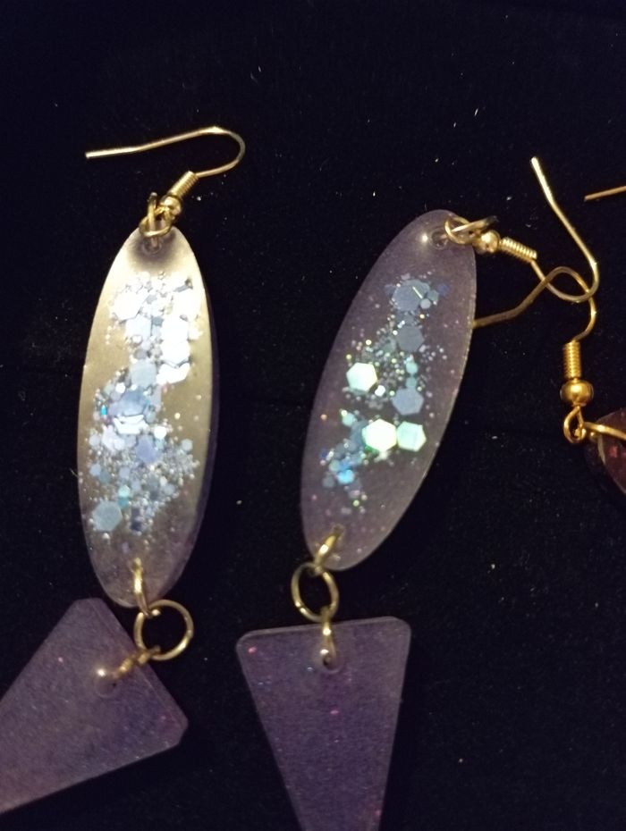 Boucle d'oreille en résine Attache doré -ton violet avec paillettes rose et bleu -Bordeau avec paillettes ⚠️ Je ne suis pas une professionnelle des défauts peuvent donc être présents