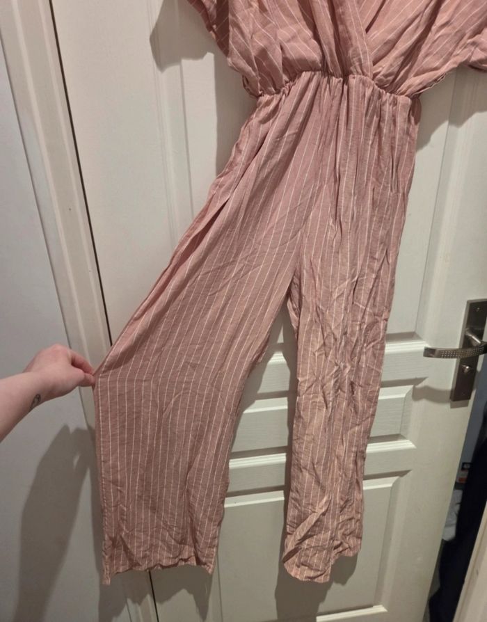 Combinaison rose a rayure blanche manche courte