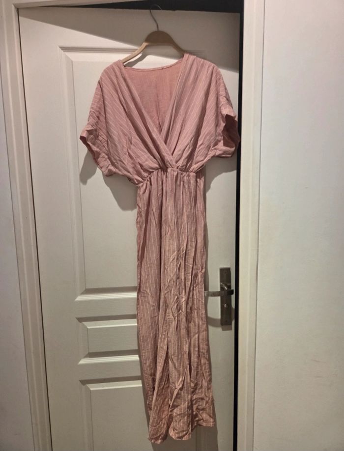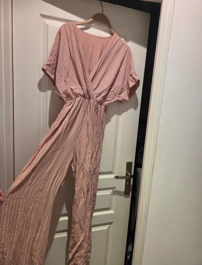 Combinaison rose a rayure blanche manche courte Taille unique mais correspond a du s Tres bon etat Aucun defaut Prix negociable Remise en main propre possible