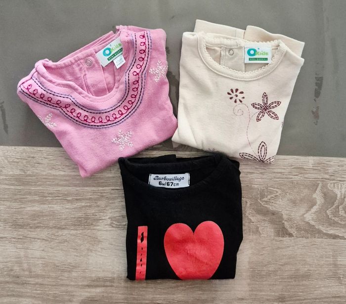 Lot 3 t-shirts bébé fille - 6 mois - Vertbaudet & Barbouillage - photo numéro 1