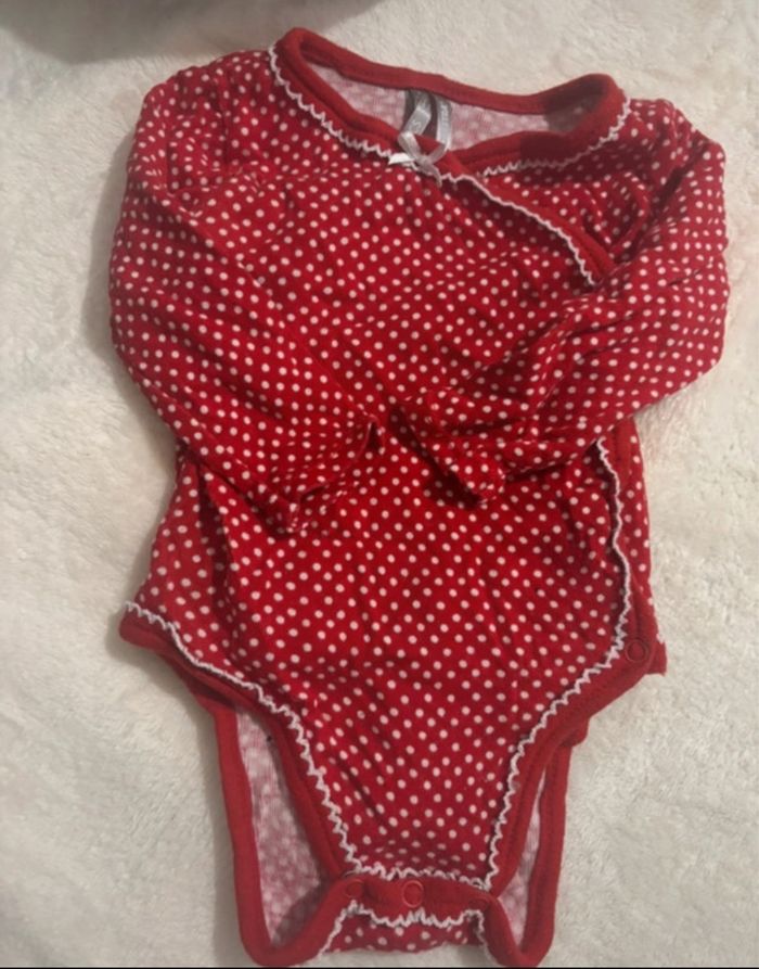 Bodies rouge a petit pois Manche longue Taille 3 mois