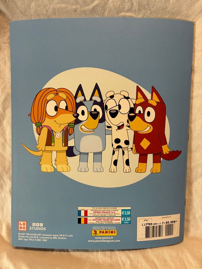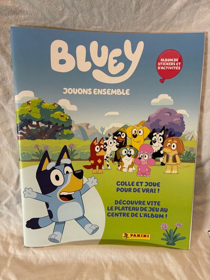 PRIX CANON 🙂💥 Kit panini BLUEY contient : 1 album vierge + 1 boite de 36 pochettes + 5 pochettes offertes Vous achetez tout se que vous voyez en photos 👀 Valeur du lot: 40,40€ Vendu à prix canon: 18€ 🙂💥 Envoi rapide et soigné