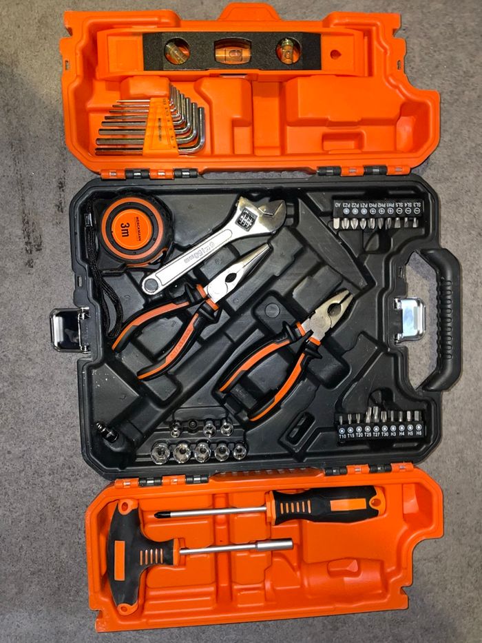 Boîte à outils de bricolage, il manque le marteau et une pince
