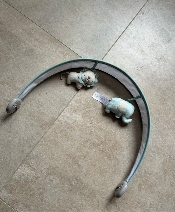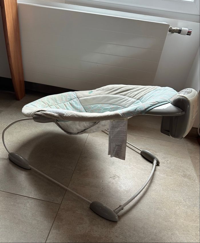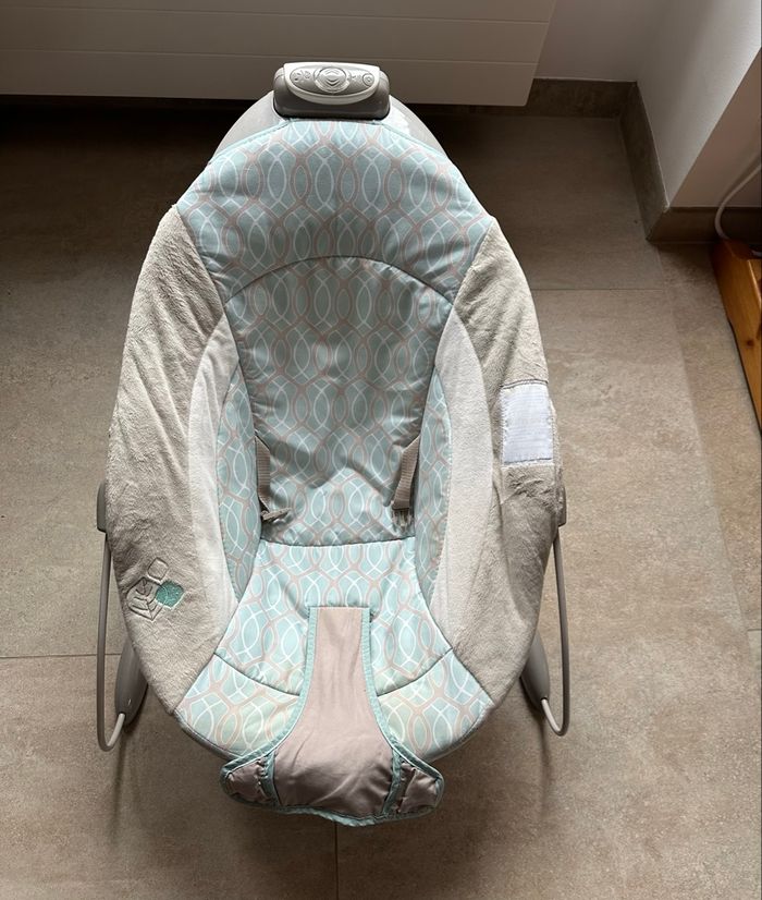 Ingenuity Balancelle Portable Transat pour bébé Se balance automatiquement grâce à un boîtier à l’arrière. Qui fait aussi de la musique berceuse et bruit blanc Vendu en très bon état, la couleur a un peu passée et il y a une petite tache mais fonctionne très bien. Vendu avec 3 paquets de piles qui nous restait.