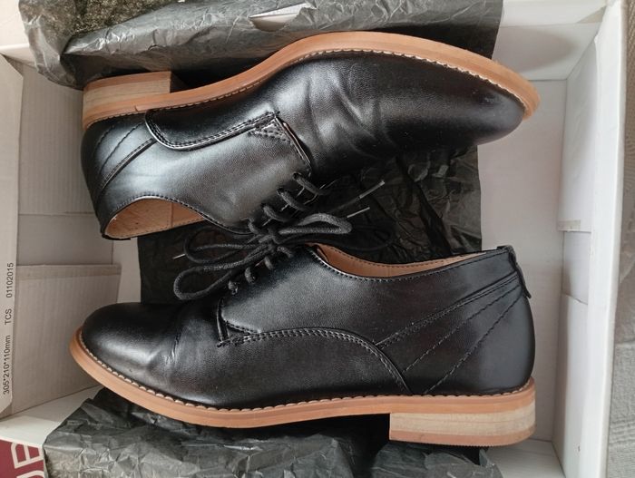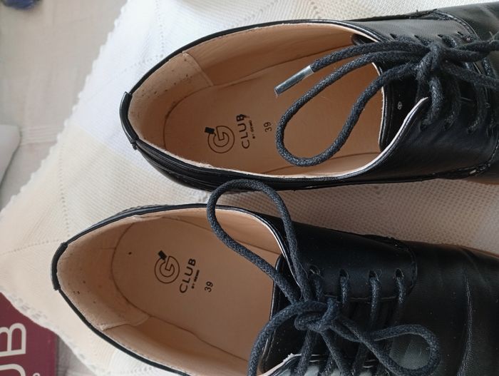 Remise sur lot activé. Chaussures Derbys noir pour femme en très bon état. Conformément aux photos il y a une petite "rayure" devant ( pied gauche) Marque : Gémo Club Pointure: 39 Mesures en photos 😊 En cuir synthétique. #derbiesfemme #derbies39 #derbiesnoires #derbiesnoiresfemmes39 #derbiesnoiresfemme