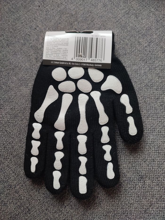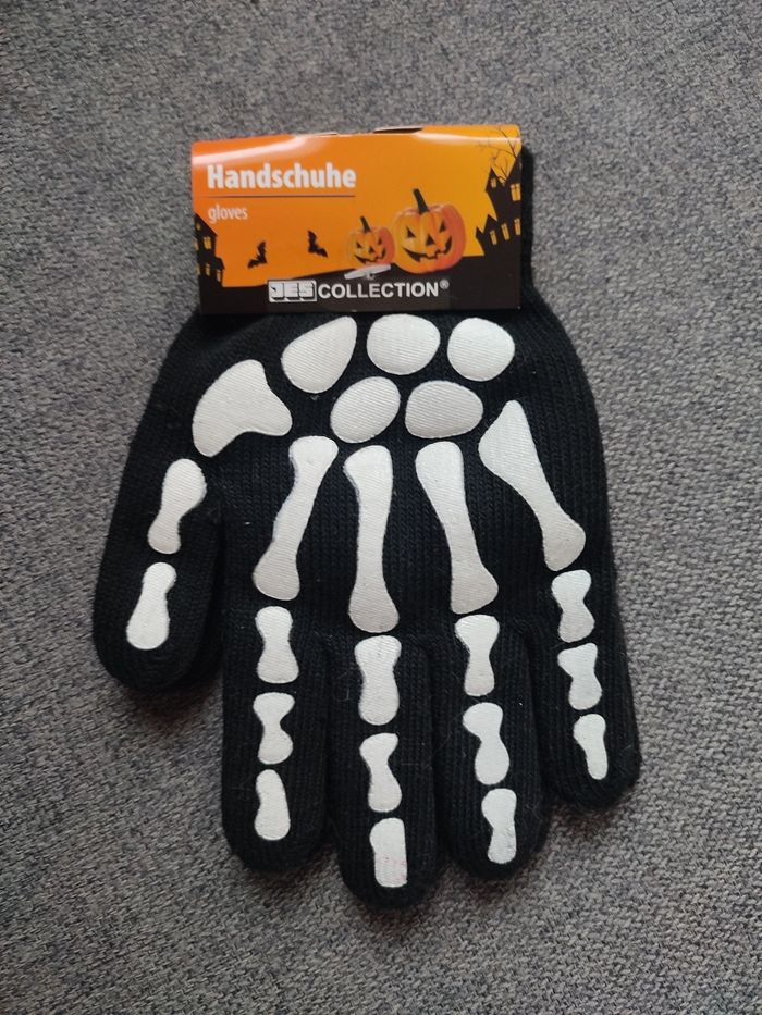Gants Halloween Squelette – 3 € 🎃 Je vends une paire de gants noirs motif squelette, parfaits pour Halloween, déguisement, soirée à thème ou cosplay. 👉 Neufs, jamais portés (encore avec l’étiquette). 👉 Taille enfant (stretch, s’adapte à la plupart des mains). 💰 Prix : 3 €