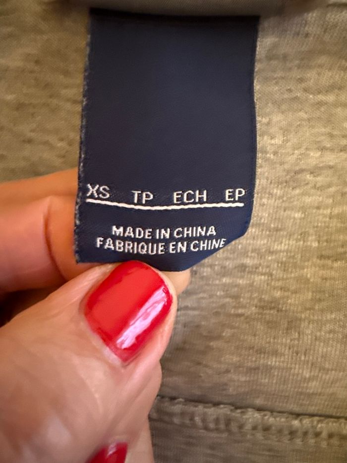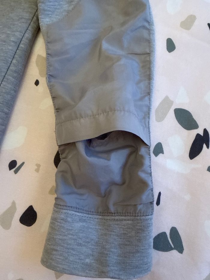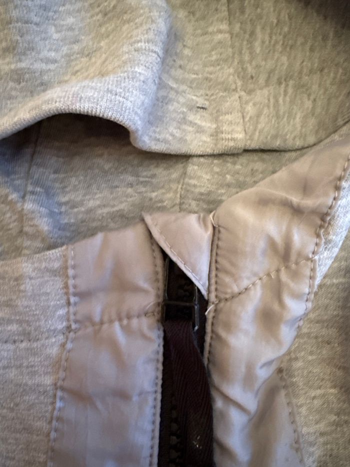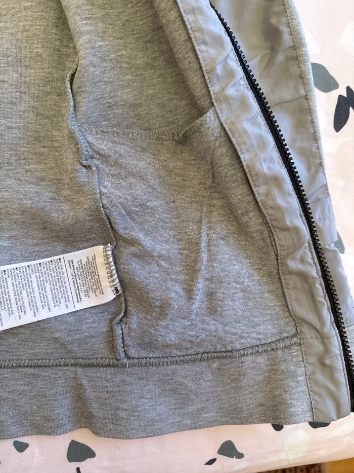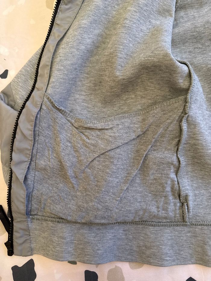 Sweat gris à capuche Nike Fermeture zippée excentrée Une petite poche cachée sur une manche Protection en haut de la fermeture éclair 2 poches intérieures 2 poches côtés En parfait état car très peu porté Taille xs Négociation possible si raisonnable Envoi rapide et soigné
