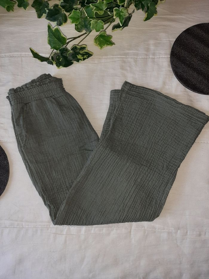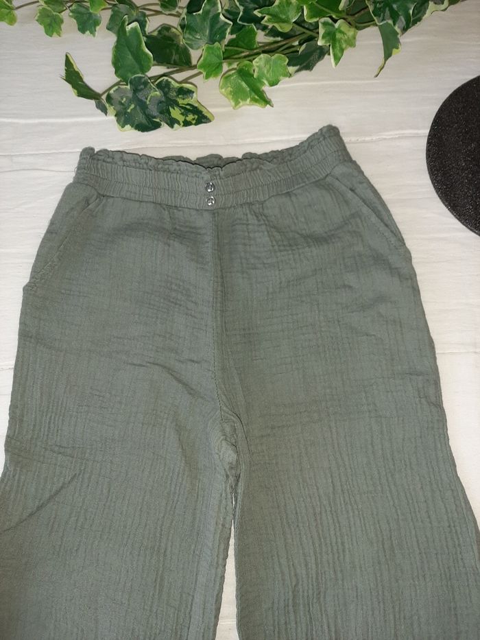Bonjour 🌺 👋 Pantalon large à poches en BE : parce qu'il a été porté plusieurs fois , donc le tissu est moins neuf au niveau : genoux et fesses. Mais rien de méchant. Sinon TBE général. Super confortable. Taille élastique. Longueur pantalon : 71cm Noté taille 8ans, mais taille 7/8ans Lavé 🙂 Couleur : kaki Saison : mi-saison printemps automne Poids: 121g Colis soignés 🌺 🌸 Dressing trié par # dans à propos A bientôt 🙂