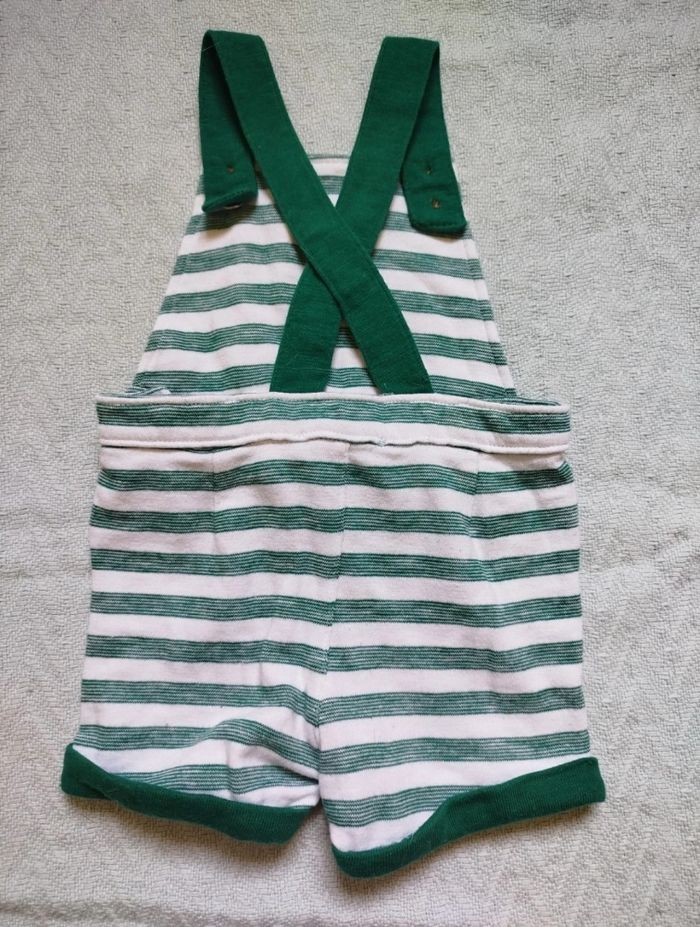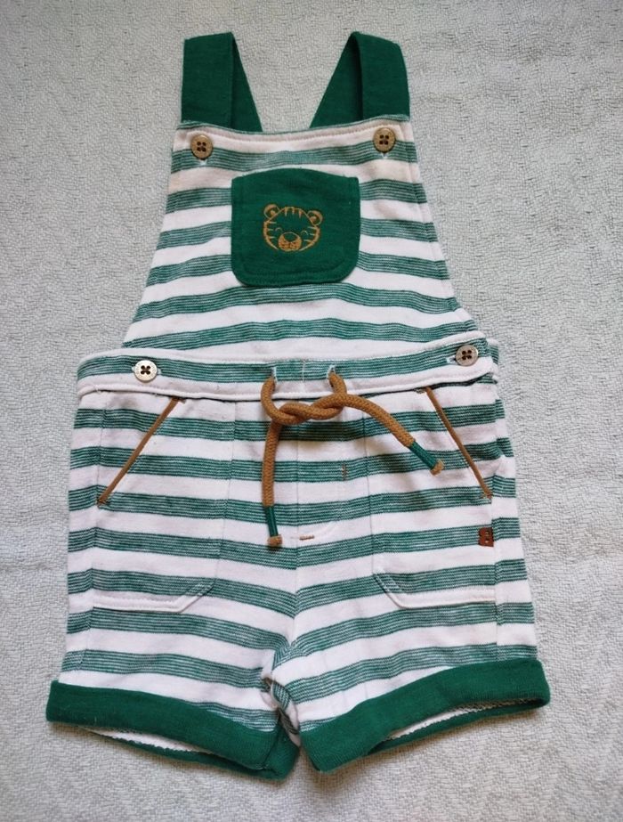 Salopette short à rayures vertes et blanches. Obaibi, 6 mois. G97