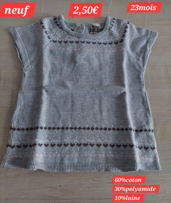 Vends Haut fille 23mois Il est neuf. Il y a plus le prix car je lave mais pas eu le temps de le mettre. Maison non fumeur Le prix d'achat est indiqué sur la photo 1
